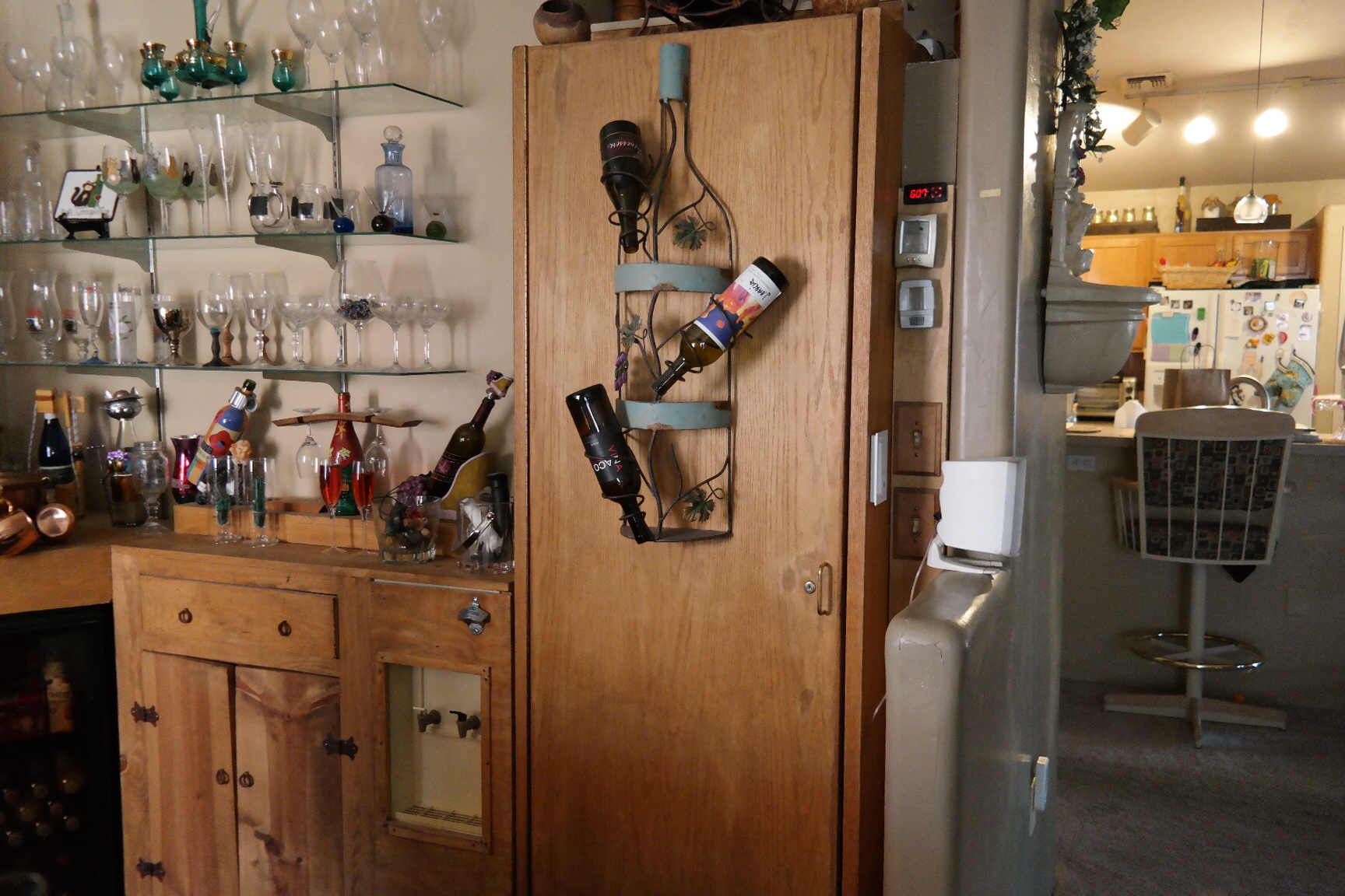 The chiller hold about 195 bottles, 2 deep. There is a shelf to keep open bottles.