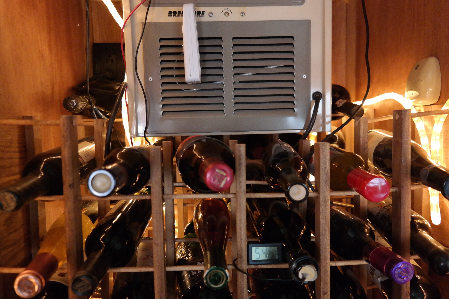 The chiller hold about 195 bottles, 2 deep. There is a shelf to keep open bottles.
